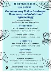 Séminaire « Contemporary Italian Foodways: Commons, mutual aid, and agroecology » – 20/11/25